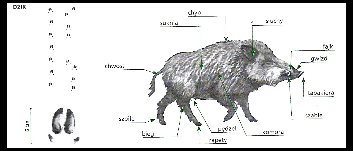 - długa i gęsta szczecina na karku u dzika