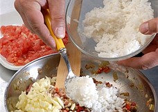 obrane ze skóry pomidory, tarty żółty ser, jaja oraz ryż. Farsz