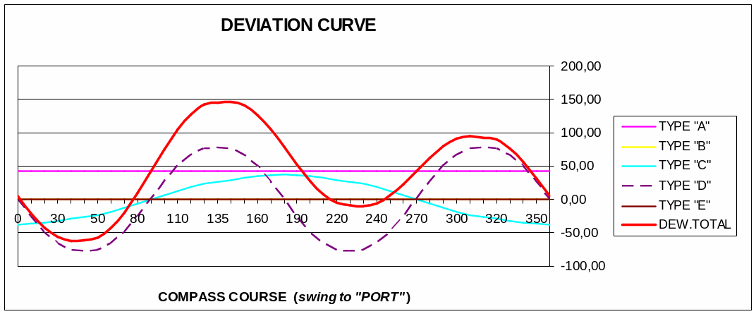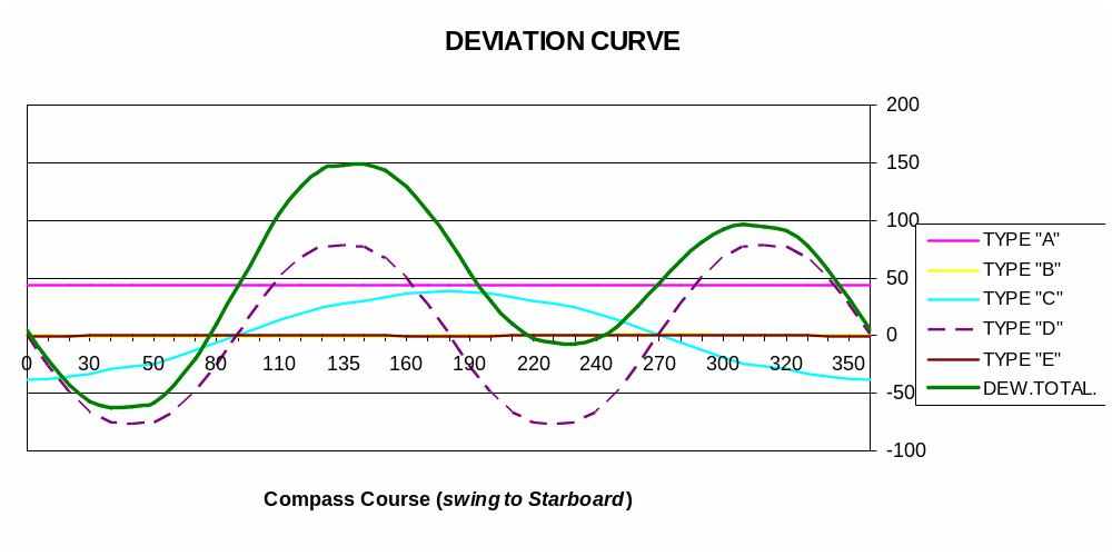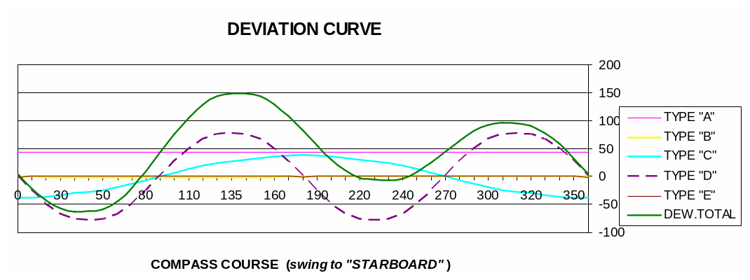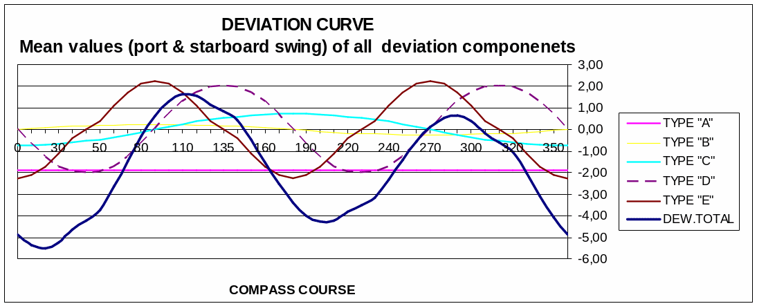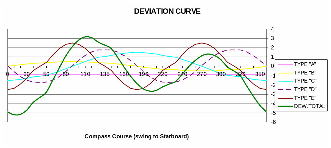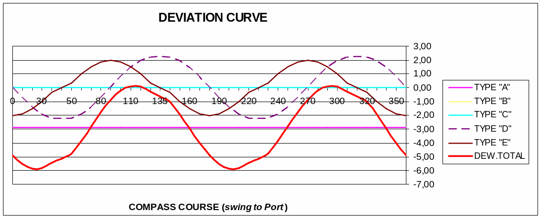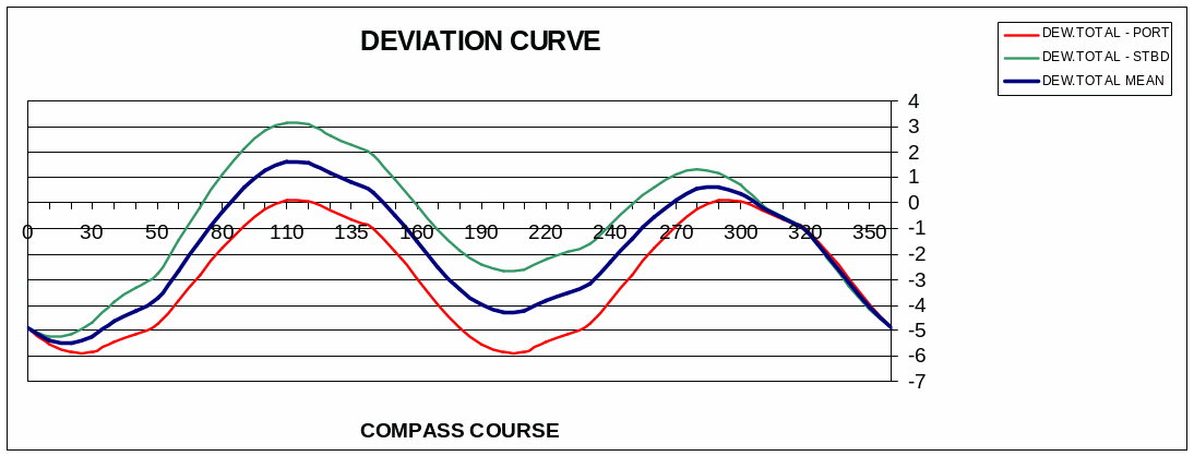 Przed kompensacją dewiacja była bardzo duża z powodu zbyt dużej ilości sztab poprzecznych umieszczonych pod płytą dewiaskopu. One powodowały znaczne zakłócenie pola magnetycznego wokół kompasu.