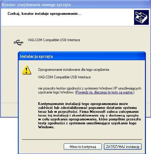 mu, że ma zainstalować sterowniki z katalogu