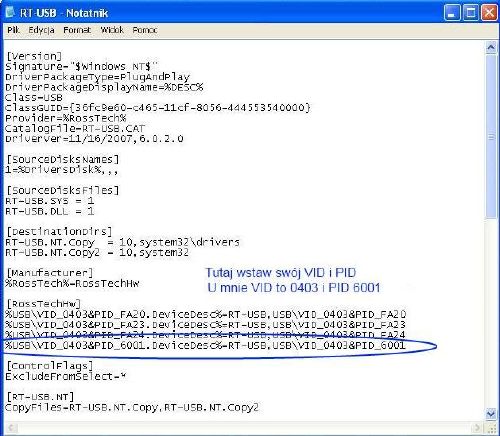 miejsce xxxx również wpisz swoje wartości VID i PID
