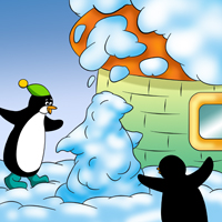 zaczęła się śnieżna bitwa. Pingwinki bawiły się i śmiały w