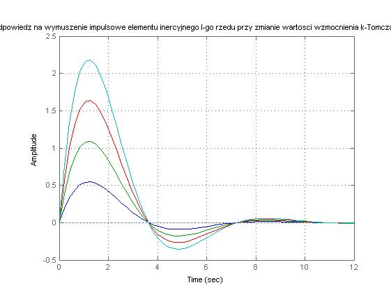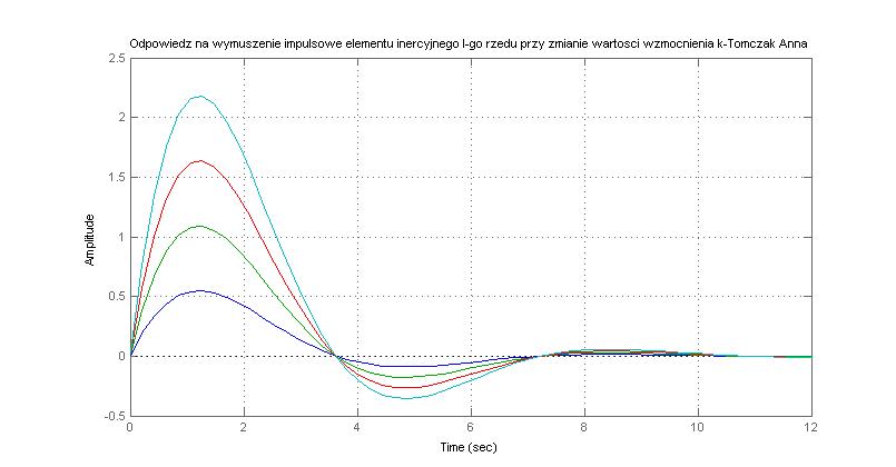 figure(2), impulse(G),hold on,grid on, title('Odpowiedz na wymuszenie impulsowe elementu inercyjnego I-go rzedu przy zmianie wartosci wzmocnienia k-Tomczak Anna')