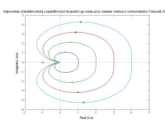 figure(4), nyquist(G),hold on, title('Odpowiedz charakterystykę częstotliwości Nyquista I-go rzedu przy zmianie wartosci wzmocnienia k-Tomczak Anna')