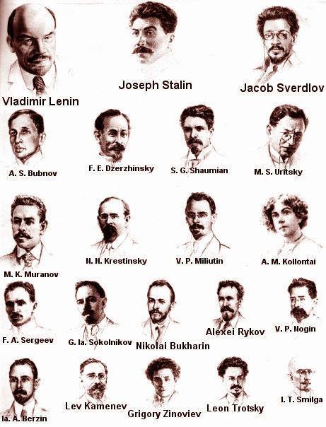 Dwa tygodnie przez bolszewicką "rewolucją październikową" w 1917, Lenin zwołał tajne spotkanie w Petersburgu / Petrograd, na którym kluczowi liderzy Komitetu Centralnego bolszewickiej partii podjęli brzemienną w skutkach decyzję o brutalnym przejęciu władzy. Z 12 uczestników którzy byli na tym spotkaniu, było 4 Rosjan (w tym Lenin), 1 Gruzin, 1 Polak (Dzierżyński) i 6 Żydów. [9]