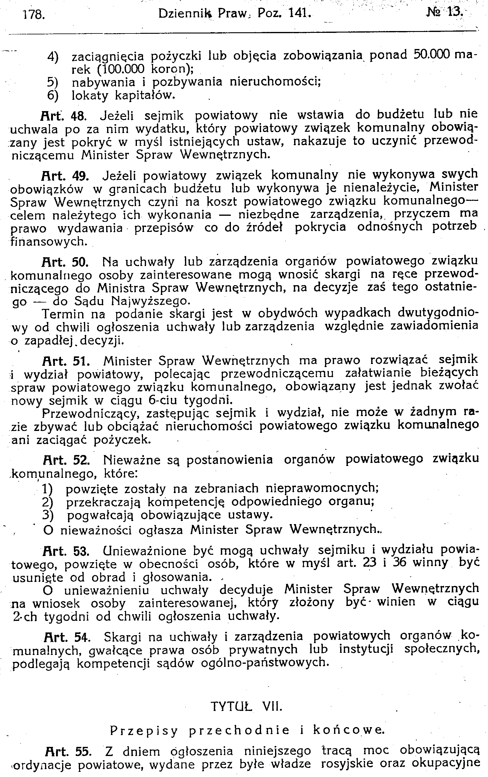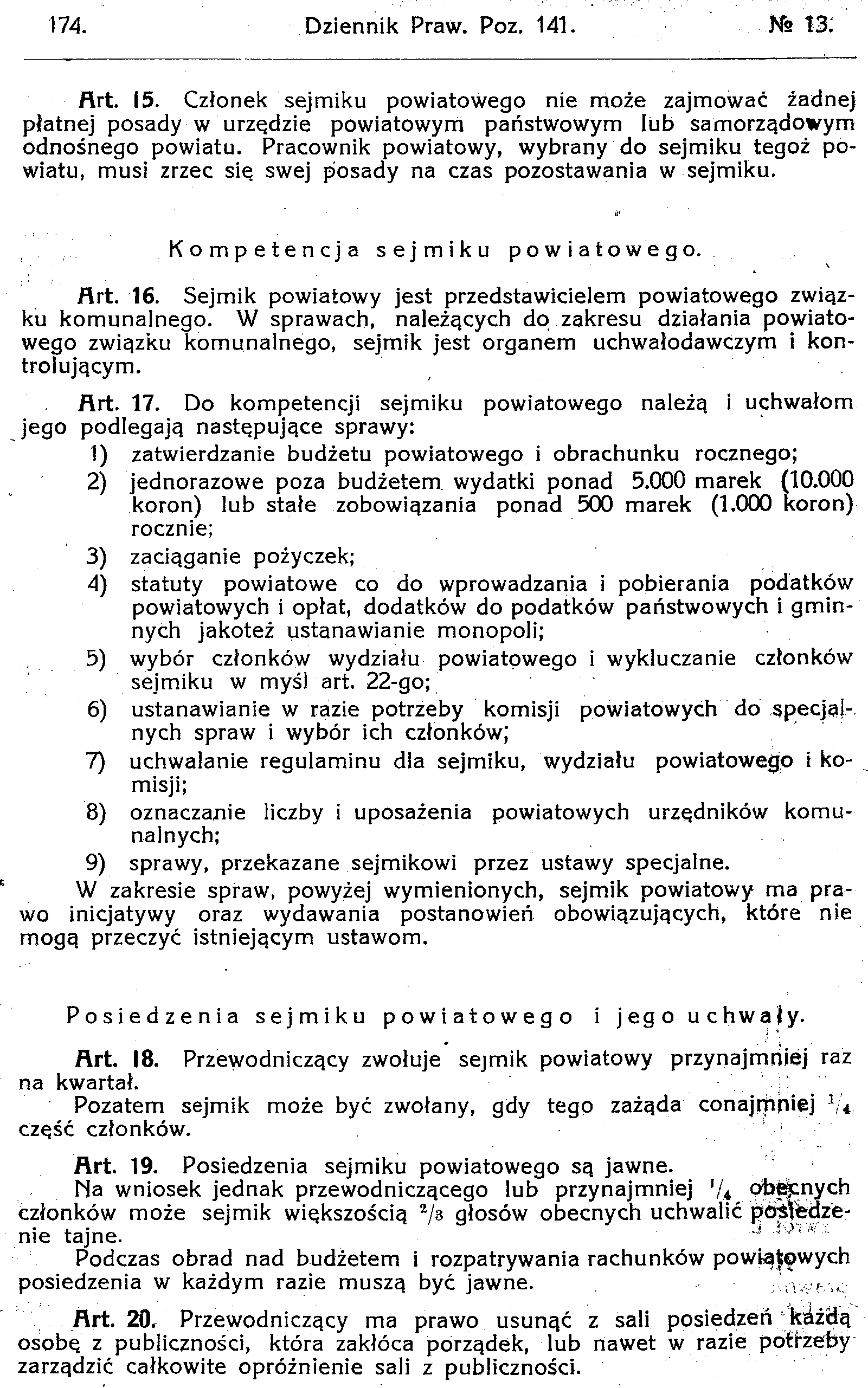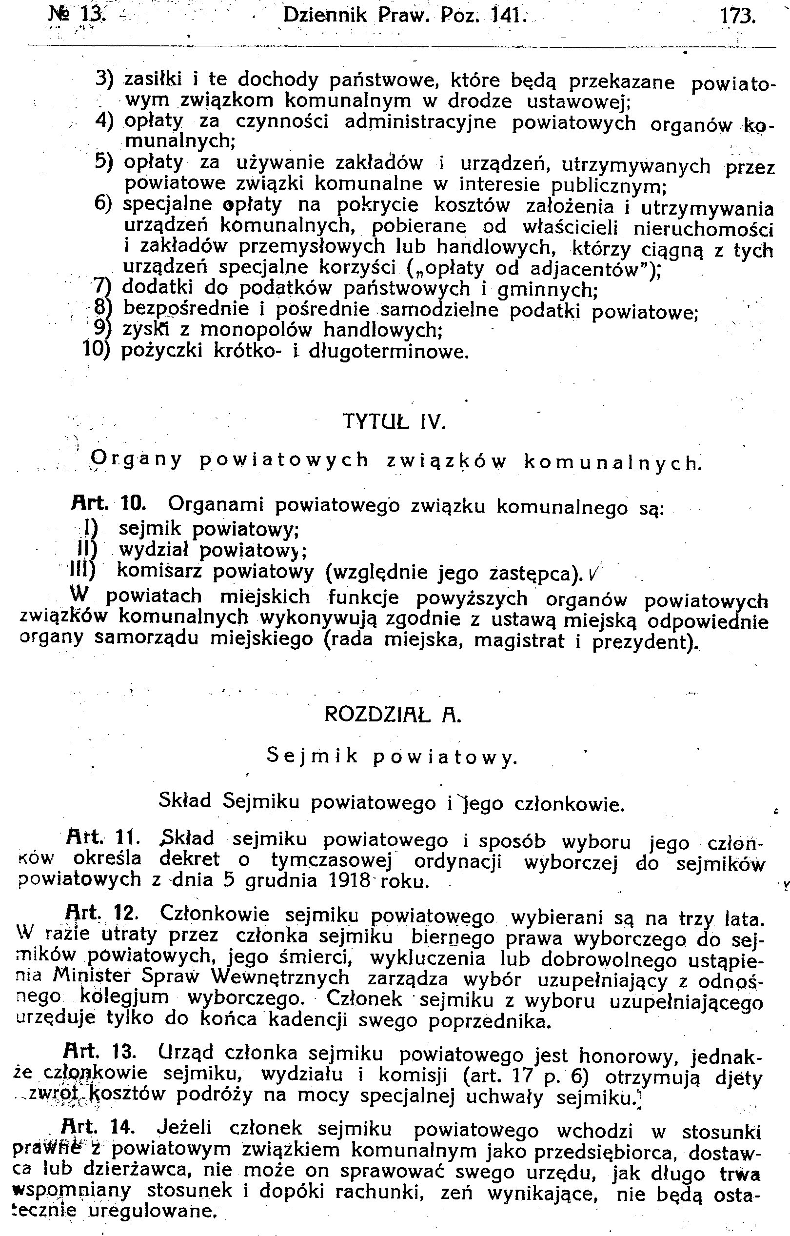 D19190151s Dekret w przedmiocie skarbowości powiatowych związków komunalnych