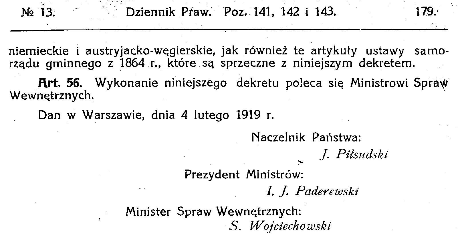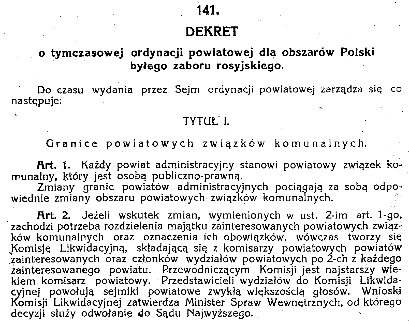 D19190141 Dekret o tymczasowej ordynacji powiatowej dla obszarów Polski byłego zaboru rosyjskiego
