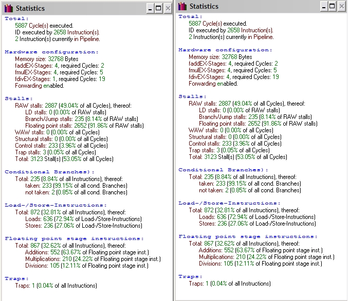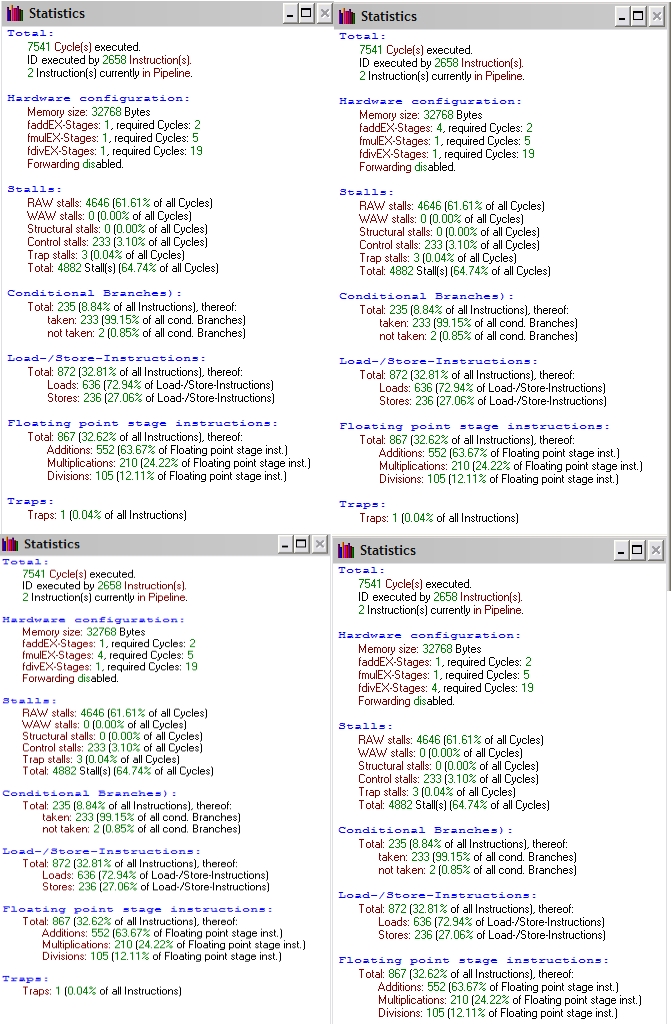 Jak widać wszystkie kombinacje jednostek arytmetycznych i forwardingu działają z taką samą szybkością.