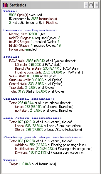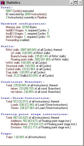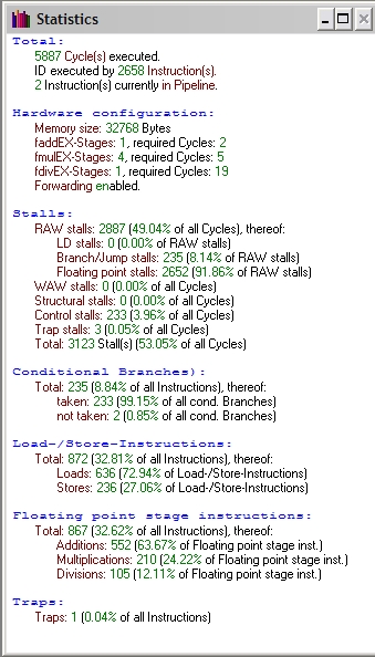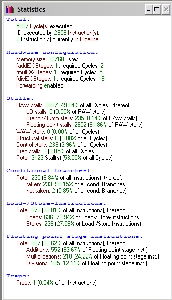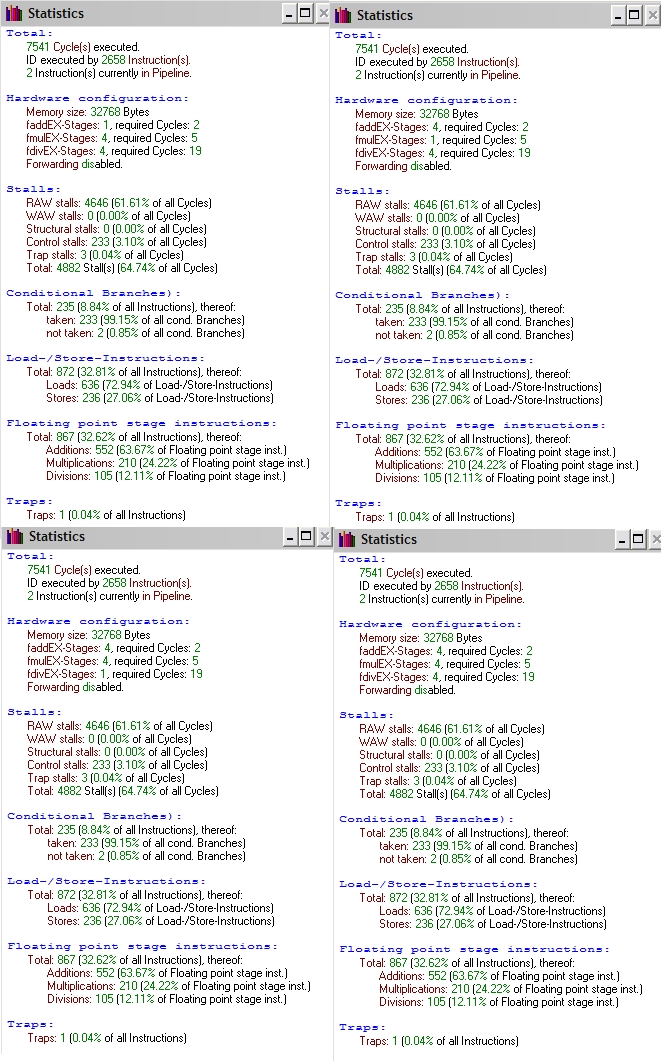 Podsumowując wykonane przeze mnie 16 pomiarów stwierdzam, iż jedynie forwarding przyspiesza działanie mojego programu. Szybszą wersją jest zatem opcja z włączonym forwardingiem a wolniejsza z wyłączonym. Ilość jednostek arytmetycznych nie wpływa na wynik działania programu.