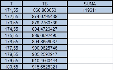 10 pierwszych elementów tablic T, TB oraz Suma