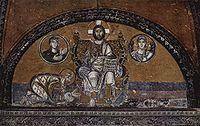 Znajdująca się w wewnętrznym narteksie nad bramą cesarską mozaika, pochodzi z końca IX lub początku X wieku. Przedstawia ona Chrystusa Pantokratora, siedzącego na wysadzanym klejnotami tronie. Prawą ręką udziela On błogosławieństwa natomiast w lewej trzyma otwartą księgę. Widnieje w niej następująca inskrypcja "Pokój z Tobą, Ja jestem światłością świata", pochodząca z ewangelii świętego Jana. U stóp Chrystusa klęczy cesarz Leon VI Filozof. W medalionach po bokach Jezusa znajdują się wizerunki Najświętszej Marii Panny i Archanioła Gabriela. Mozaika ta symbolizuje wieczną władzę nadaną przez Chrystusa Cesarzom bizantyńskim.