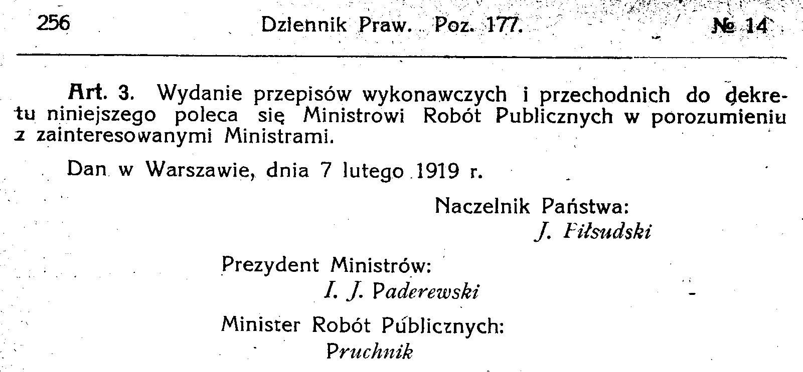 D19190149 Dekret w przedmiocie tymczasowych przepisów o zarządzie drogami kołowemi