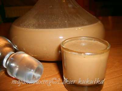 rozpuścić gotując w mleku. Ostudzić. Wlać wódkę, wymieszać,
