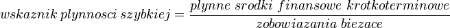 wskaźnik szybkości spłaty zobowiązań bieżących = (płynne środki obrotowe/zobowiązania bieżące) * 100%