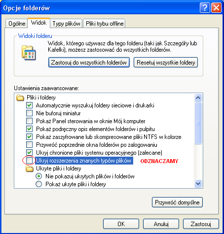 wchodzimy w Mój komputer-> Narzędzia -> Opcje folderów ->