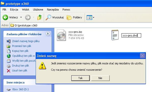 Zmieniamy rozszerzenie txt na dvd.