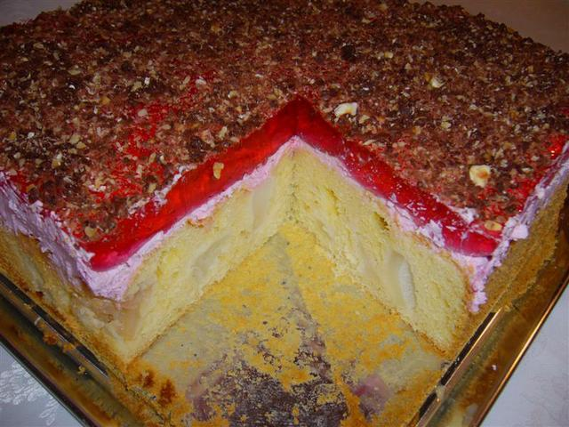 wystudzić, tężejącą galaretkę wylać na ciasto, gdy zastygnie
