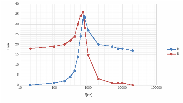 Tab.2. Tabela pomiarowa z prądami przepływający przez elementy obwodu LC