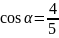 Trójkąt prostokątny o przeciwprostokątnej długości 4 i przeciwprostokątnej, leżącej przy kącie α, długości 3.