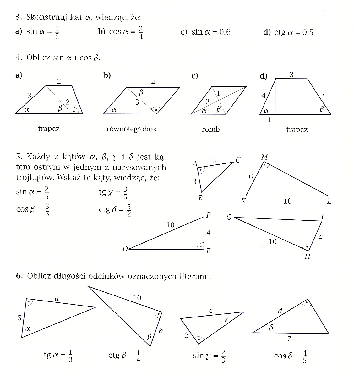 wartości funkcji trygonometrycznych kątów α i β.