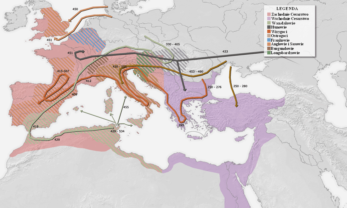 źródło:http://pl.wikipedia.org/wiki/Wielka_w%C4%99dr%C3%B3wka_lud%C3%B3w#mediaviewer/File:MapaWielkiejWedrowkiLudow.png