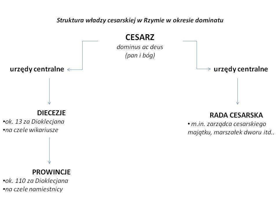 Schemat struktury władzy cesarskiej w Rzymie w okresie dominatu.