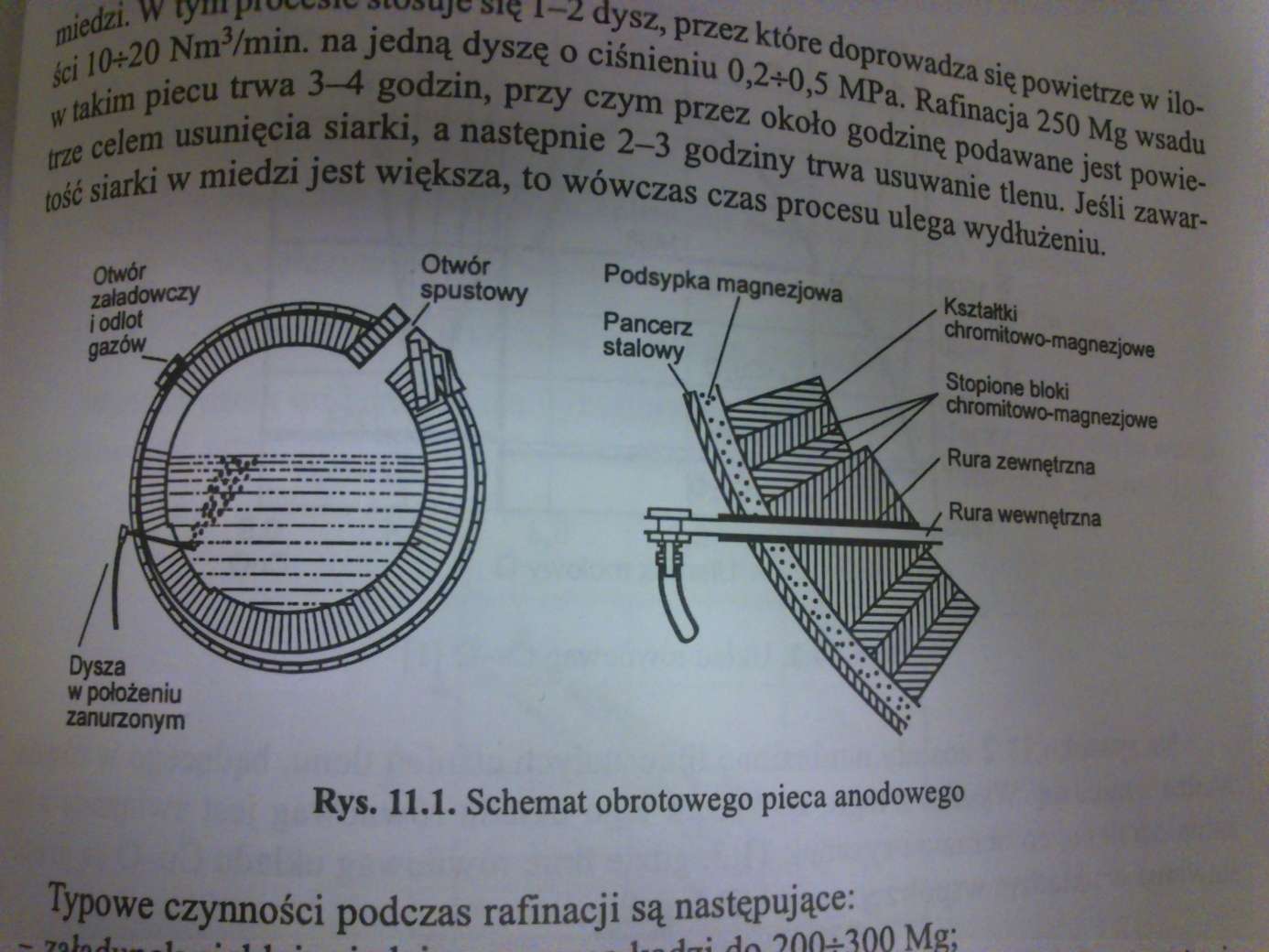 Zaprojektuj proces i zaproponuj urządzenia do rafinacji ogniowej miedzi. Wydział ma produkować 100 000 ton Cu na rok. Miedź konwertorowa zawiera 98% Cu.