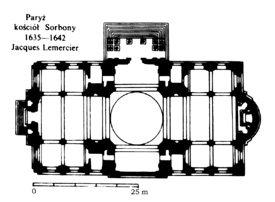 Rachelieu *plan podłużny prostokątny3 nawowy *kopuła na