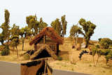 Na podstawie odkrytych tam układów jam-piwniczek, znajdujących się pierwotnie obok domów, można odtworzyć wygląd wsi z epoki brązu. Kilkanaście gospodarstw tworzyło zamknięty układ na planie owalnym a w środku znajdował się duży niezabudowany plac. Jednocześnie we wsi mogło mieszkać nawet 100 osób.