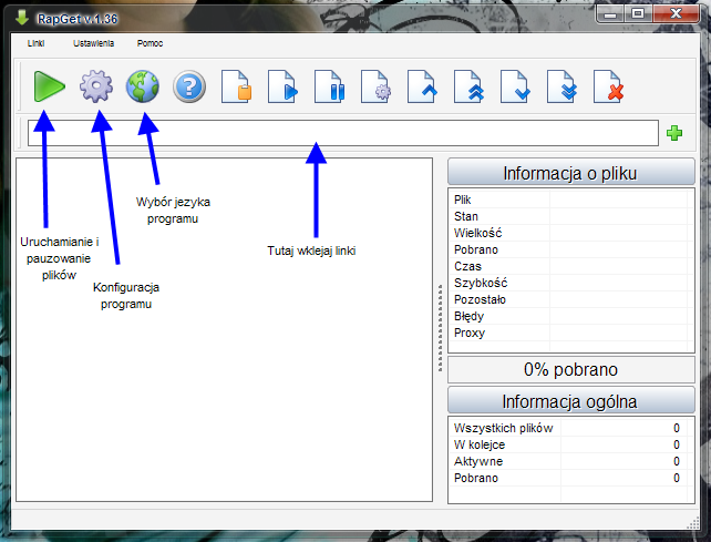 Oto okno programu RapGet: