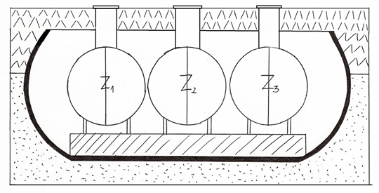 1 zbiornik podziemny magazynowy gazu płynnego LPG o pojemności 1000 cm3