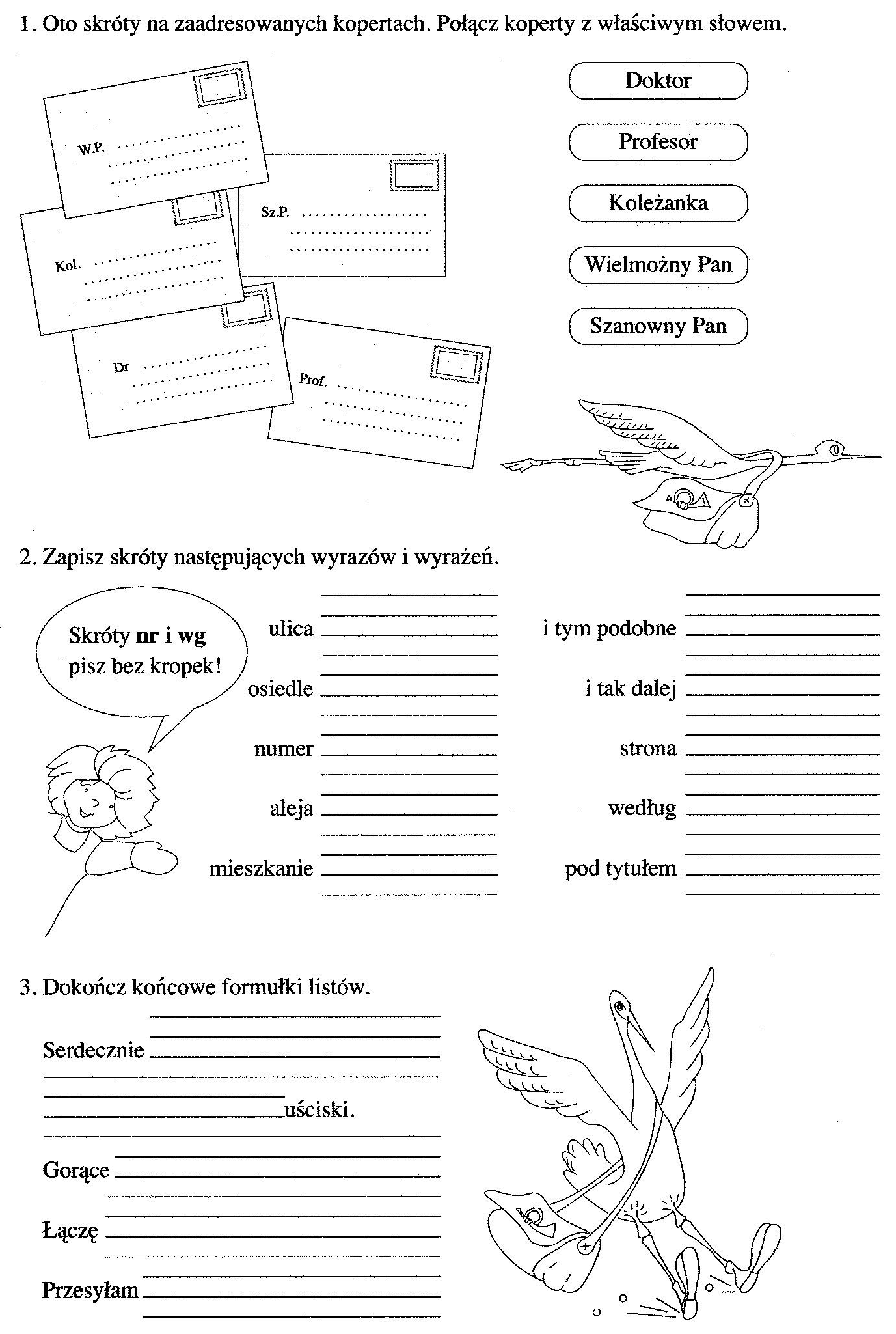 Uzupełnij tekst listu Krzysia podanymi zwrotami grzecznościowymi. Zwróć uwagę na ich pisownię.