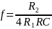 Zakładamy że R1 wyniesie 1,2kΩ, R2 ma więc wartość 10kΩ. C wyznaczono przy założeniu że częstotliwość sygnału trójkątnego powinna wynosić około 400KHz, oraz zakładając że R=1kΩ, wyznaczona wartość C wynosi 5,5nF.