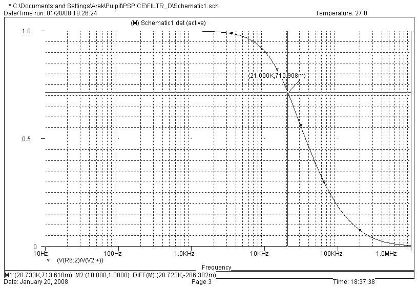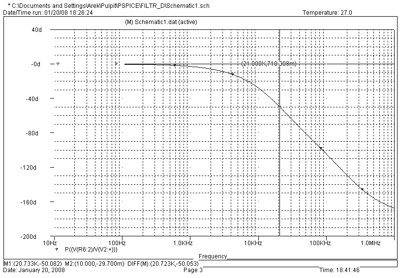 obciążenia C = 180nF. Charakterystyka filtru o takich wartościach
