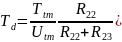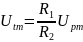 Upm to amplituda wyjściowa sygnału z przerzutnika Schmitta. Generator sygnału zasilany jest napięciem symetrycznym + - 12V, dlatego Upm przyjęto jako 10[V] Założona żądania amplituda wyjściowa wynosi 1.2V. Jako że za maksymalne wysterowanie wzmacniacza uznano sygnał o amplitudzie 1V, zachowano więc pewien margines bezpieczeństwa. Mając założoną amplitudę wyznaczamy stosunek wartości R1 do R2