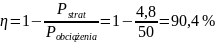 Dla częstotliwości 5KHz, przy wysterowaniu sygnałem o amplitudzie 0,9[V] średnia moc wydzielona w pojedynczym tranzystorze nie przekracza 0,7[W]. Sprawność stopnia końcowego wynosi więc