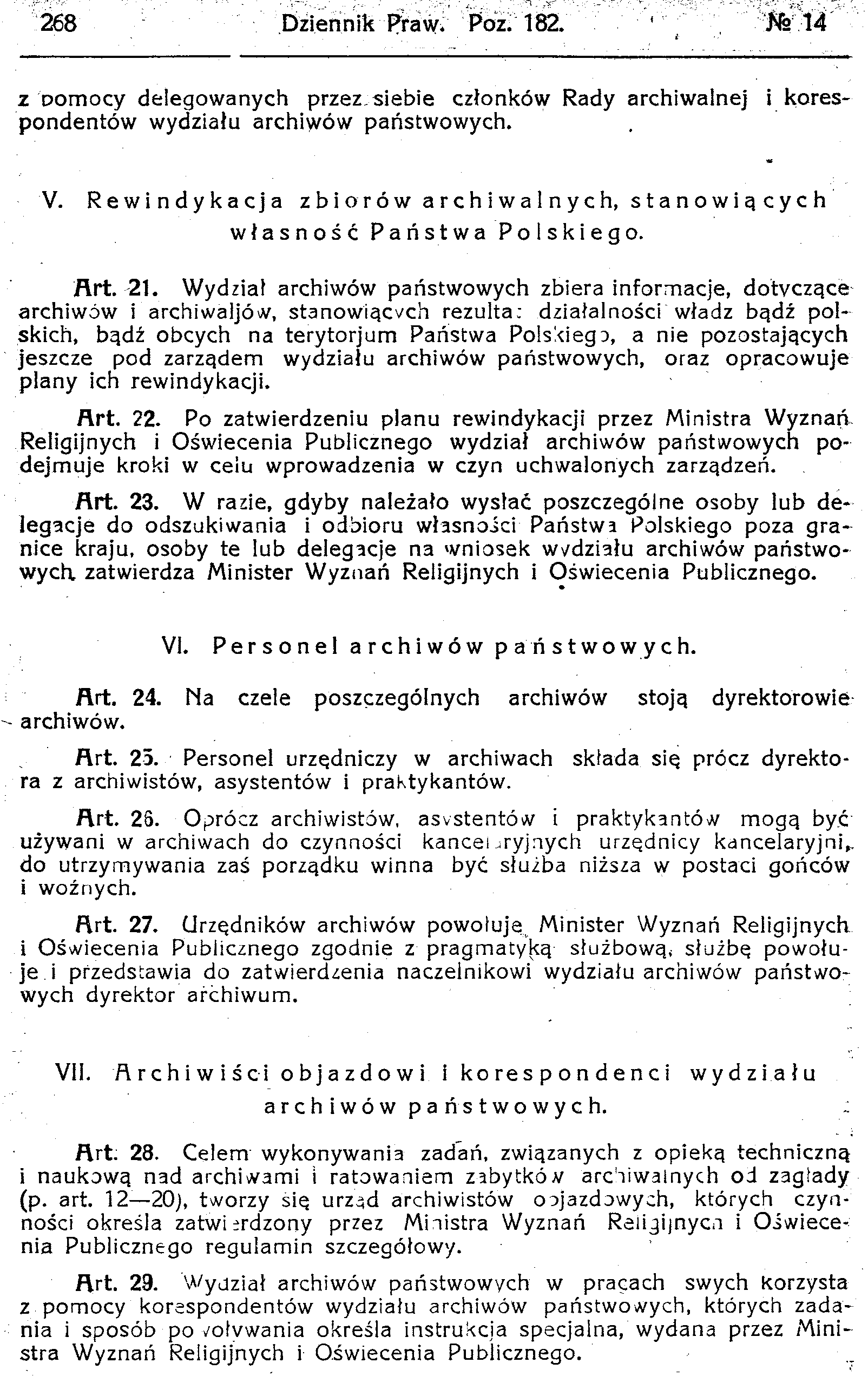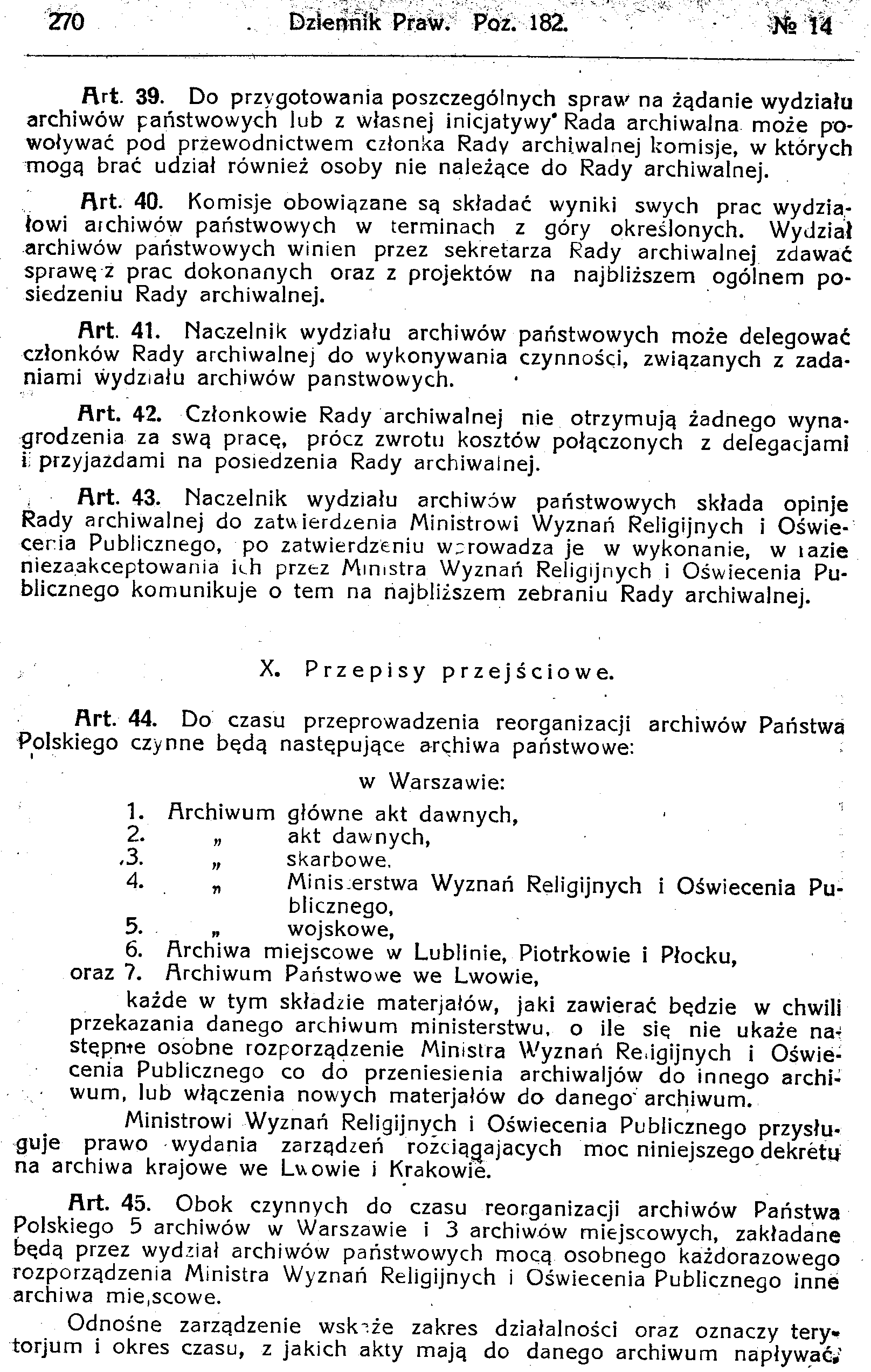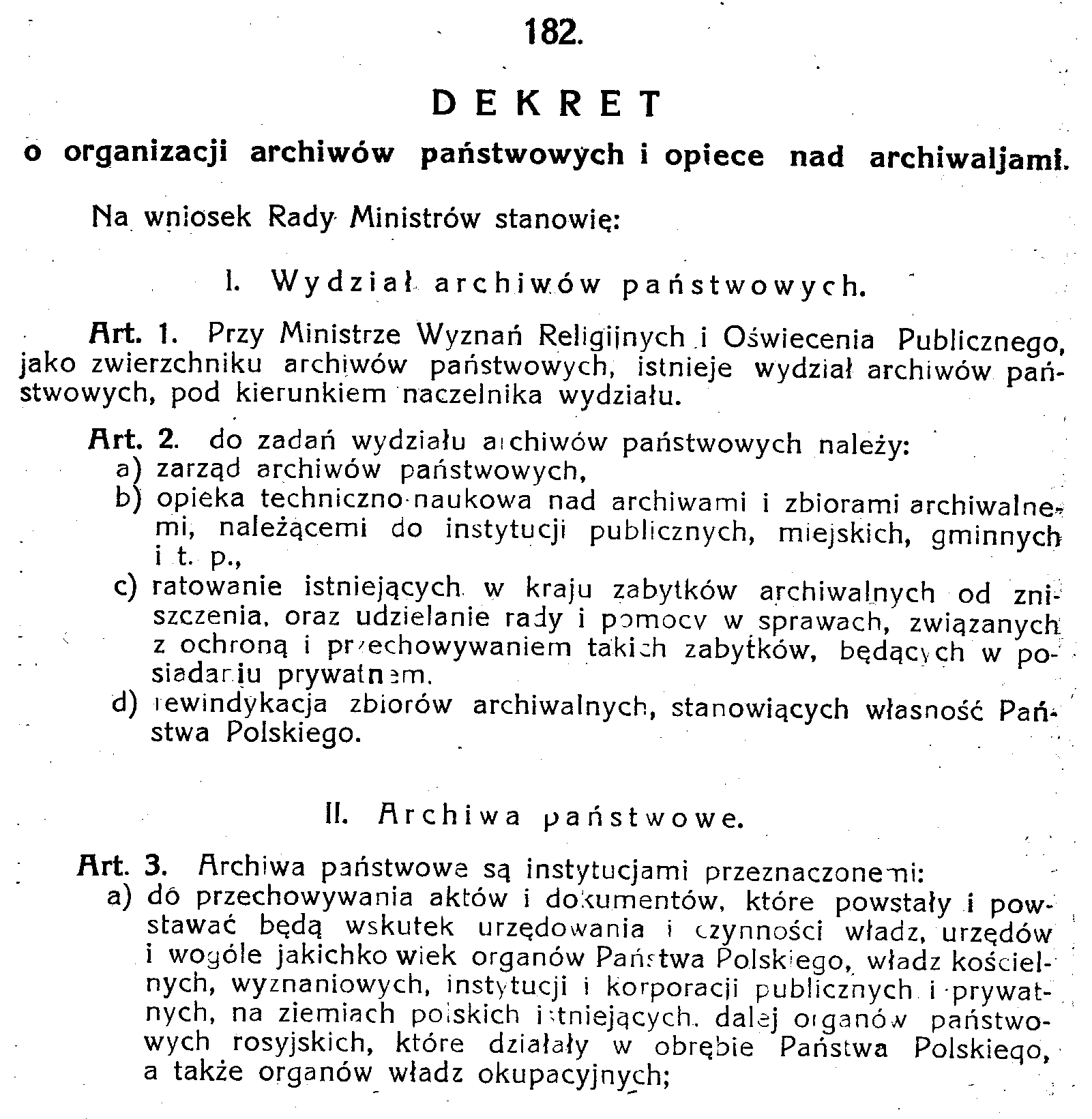 D19190182s Dekret o organizacji archiwów państwowych i opiece nad archiwaljami