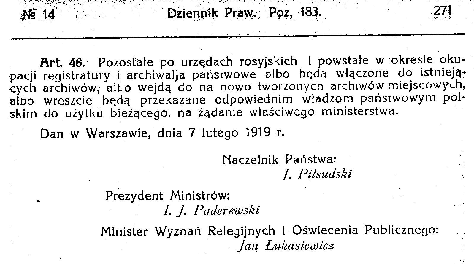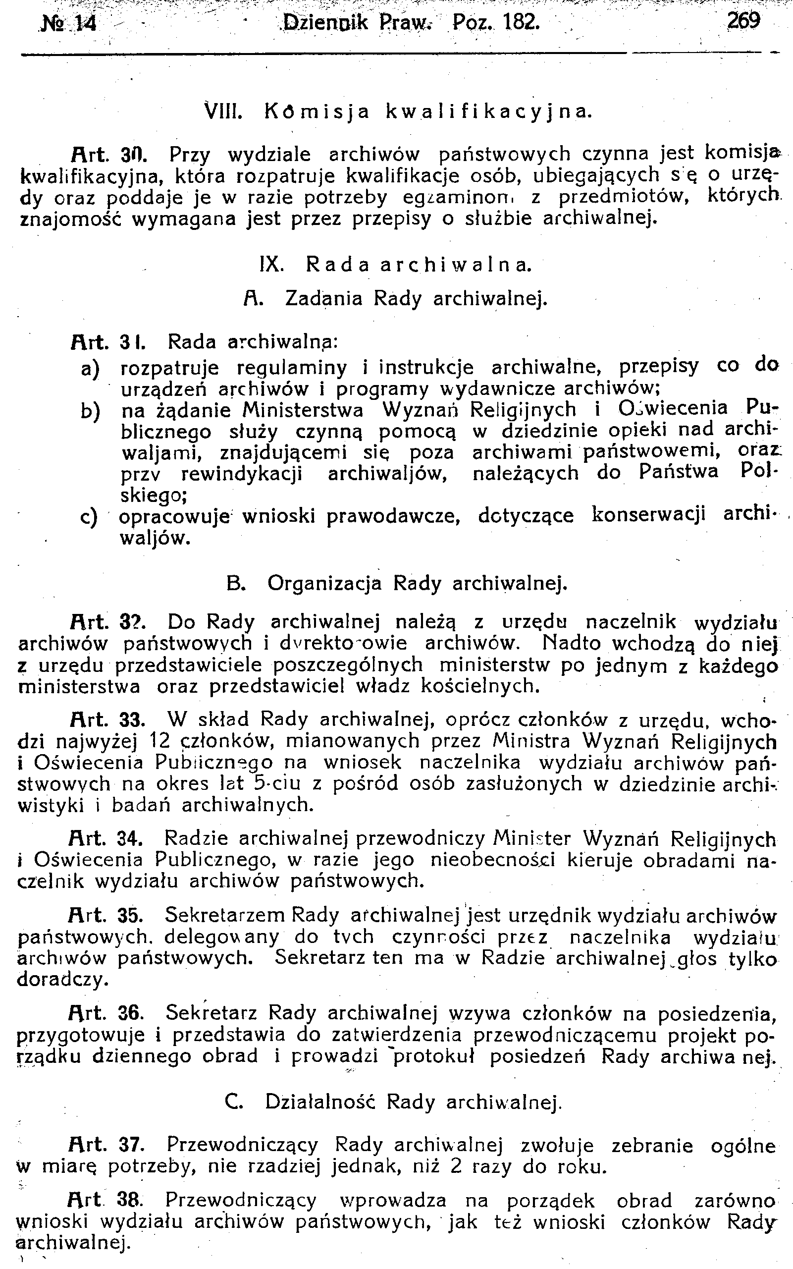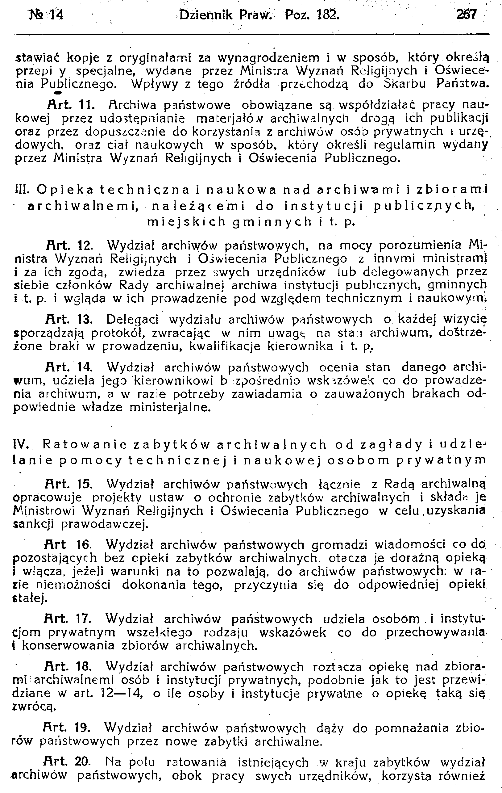 D19190182s Dekret o organizacji archiwów państwowych i opiece nad archiwaljami