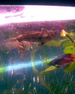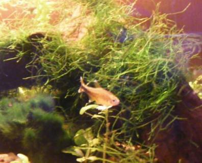 Akwarium gęsto obsadzone roślinami, rybę tą można trzymać z innymi łagodnymi rybami. |