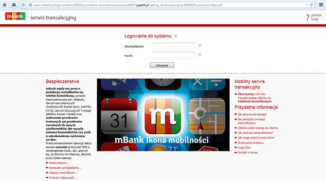 strona logowania - adres przypomina adres mBanku tylko na początku