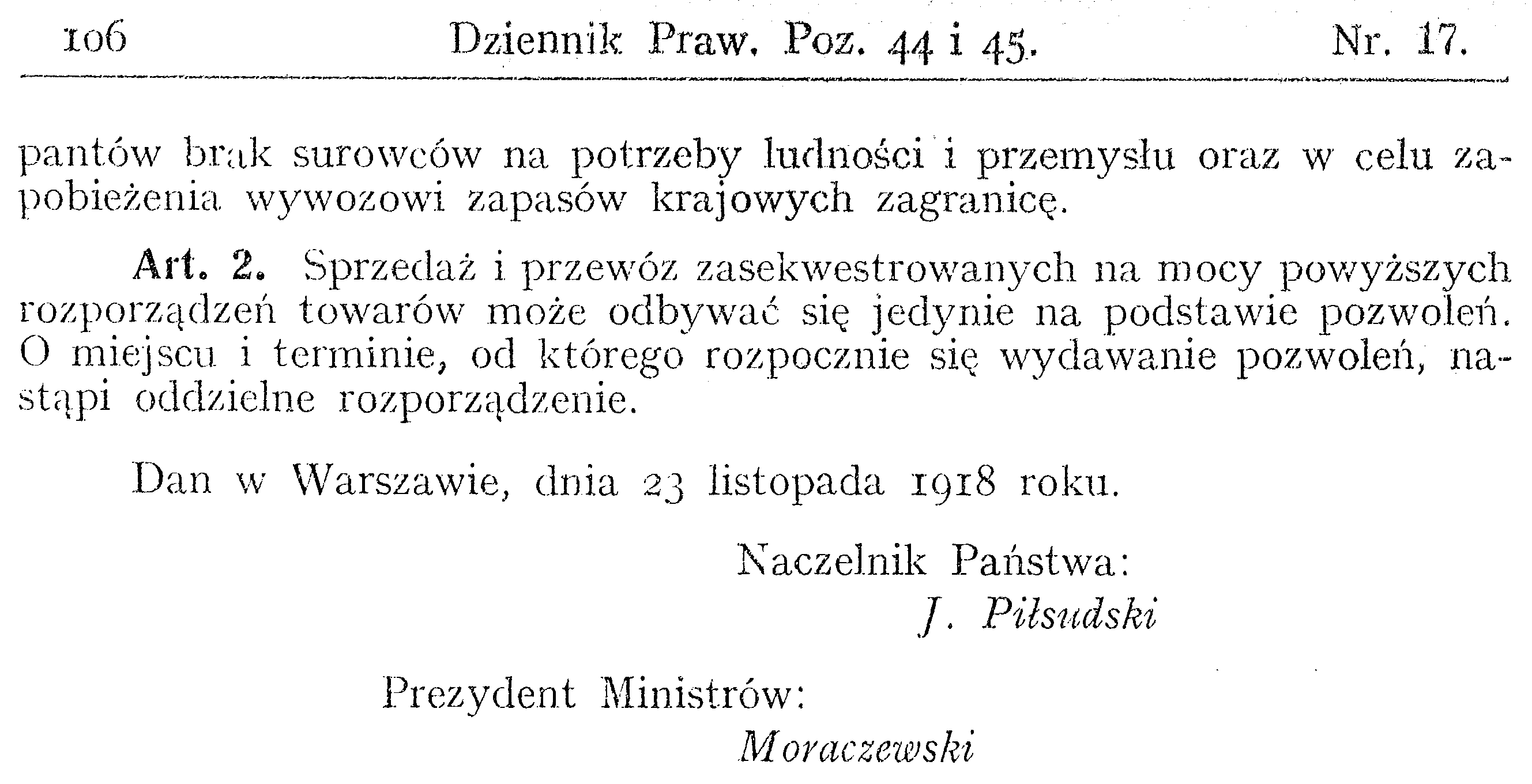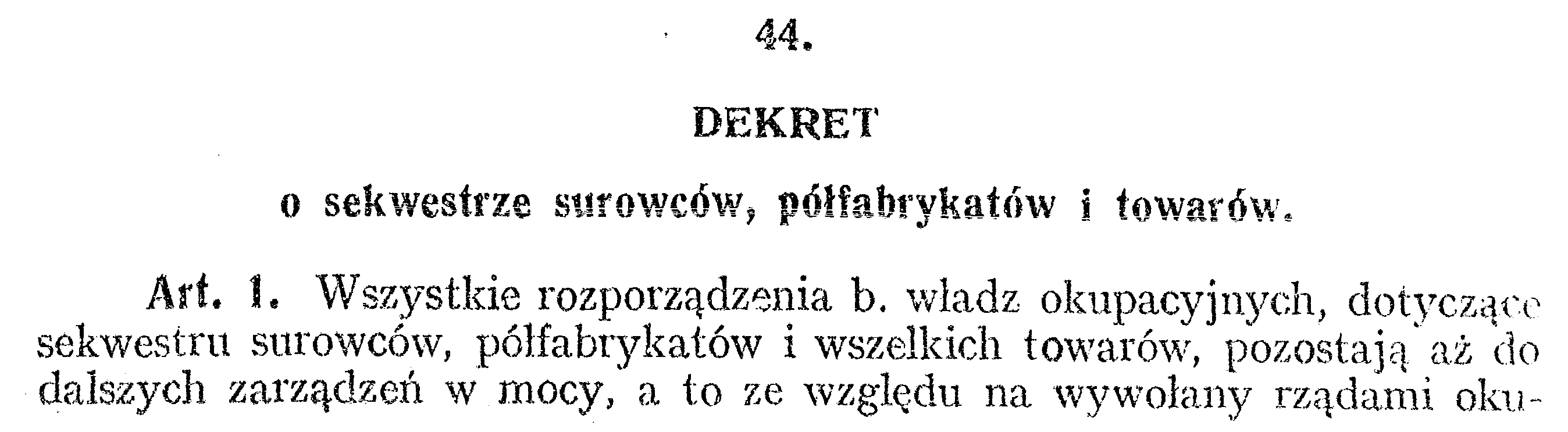 D19180044 Dekret o sekwestrze surowców, półfabrykatów i towarów