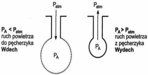 ruch powietrza do pęcherzyka (wdech) i ruch powietrza z pęcherzyka (wydech).
