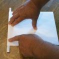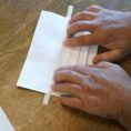 Przyłóż 1,5 cm pasek do dolnej krawędzi kartki papieru a następnie zagnij kartkę przykrywając nią pasek. Uważaj, aby podczas zaginania kartki pasek się nie przesuwał.