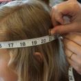Zmierz obwód głowy dziecka za pomocą metra krawieckiego. Dodaj do wyniku około 2,5 cm a następnie odmierz tą długość na materiale na czapkę i przytnij.