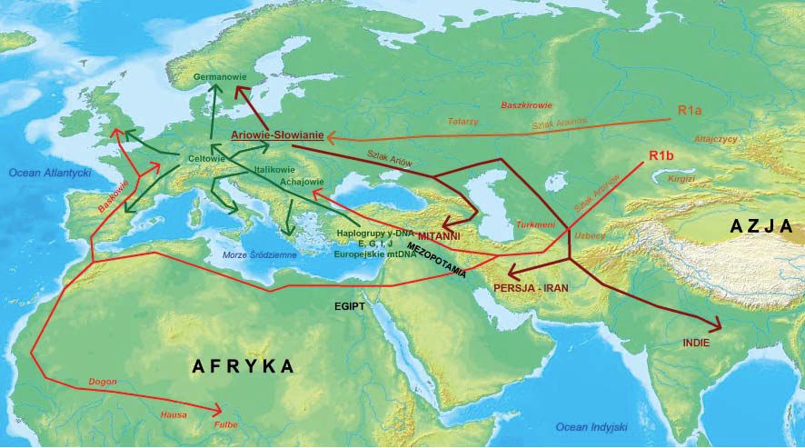 Najnowsze odkrycia podważają również poglądy wielu uczonych z końca XIX i początków XX wieku, głoszących, iż najbliższymi krewnymi Ariów były ludy germańskie. Genetyka i językoznawstwo są w tej kwestii jednomyślne: Germanowie powstali jedynie w wyniku oddziaływania pra-Ariów na mieszkańców północnej Europy, podczas gdy zamieszkujący środkowo-wschodnią Europę ludy słowiańskie (Polacy, Ukraińcy, Białorusini) są tych pra-Ariów bezpośrednimi potomkami.