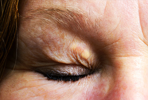 Te grudki na górnej lub dolnej powiece nazywają się żółtaki. Składają się z cholesterolu, i może nie podoba ci się ich wygląd, nie są niebezpieczne ani bolesne, i zwykle można je usunąć. Ale mogą być oznaką prawdopodobieństwa wystąpienia choroby czy ataku serca, lepiej skonsultuj lekarza.