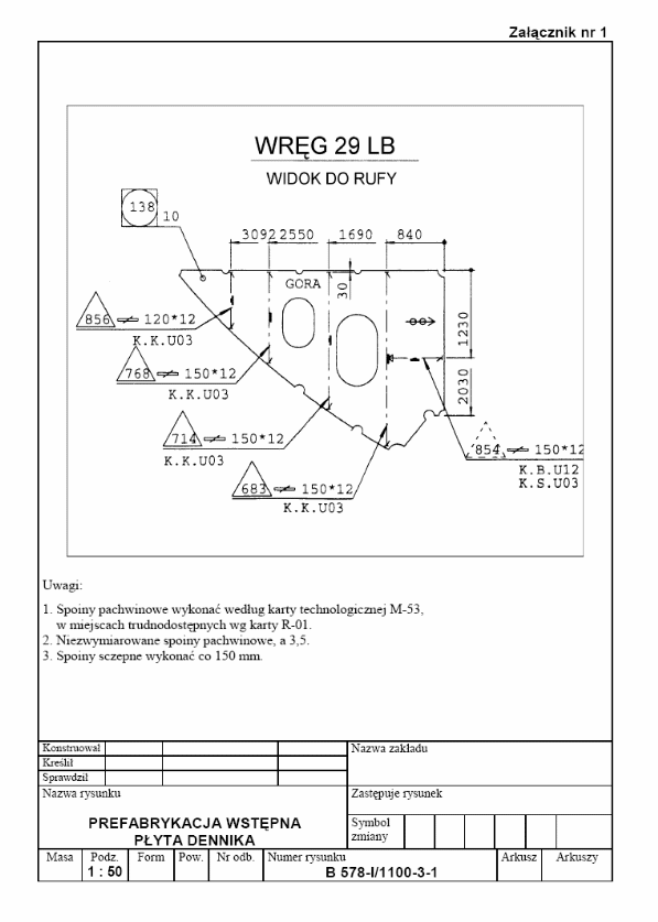 usztywnienia 854 oraz zwymiaruj wycięcia ulżeniowe /skala 1:50/