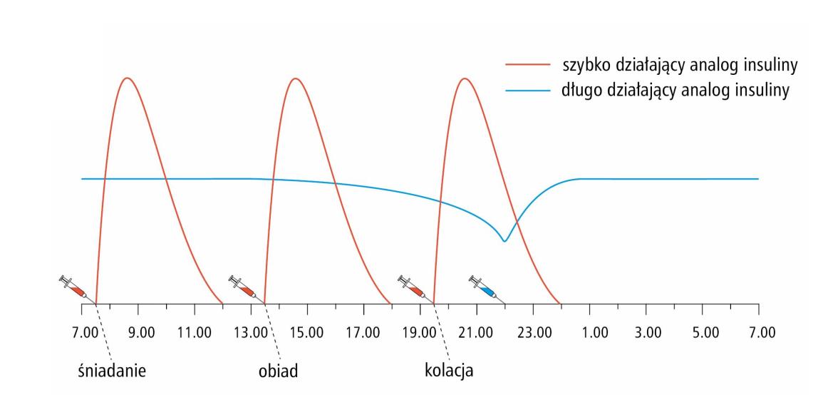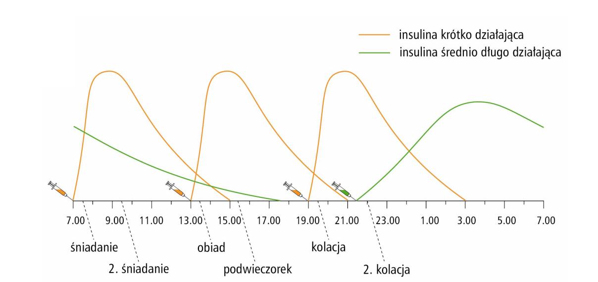 - dopuszczalne 2 wstrzyknięcia na dobę insuliny podstawowej (niektórzy stosują 3 x dz)