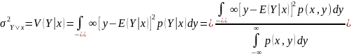 E(Y|x)=fy(x)- równanie regresji Y względem X i odpowiednia warunkowa wariancja: