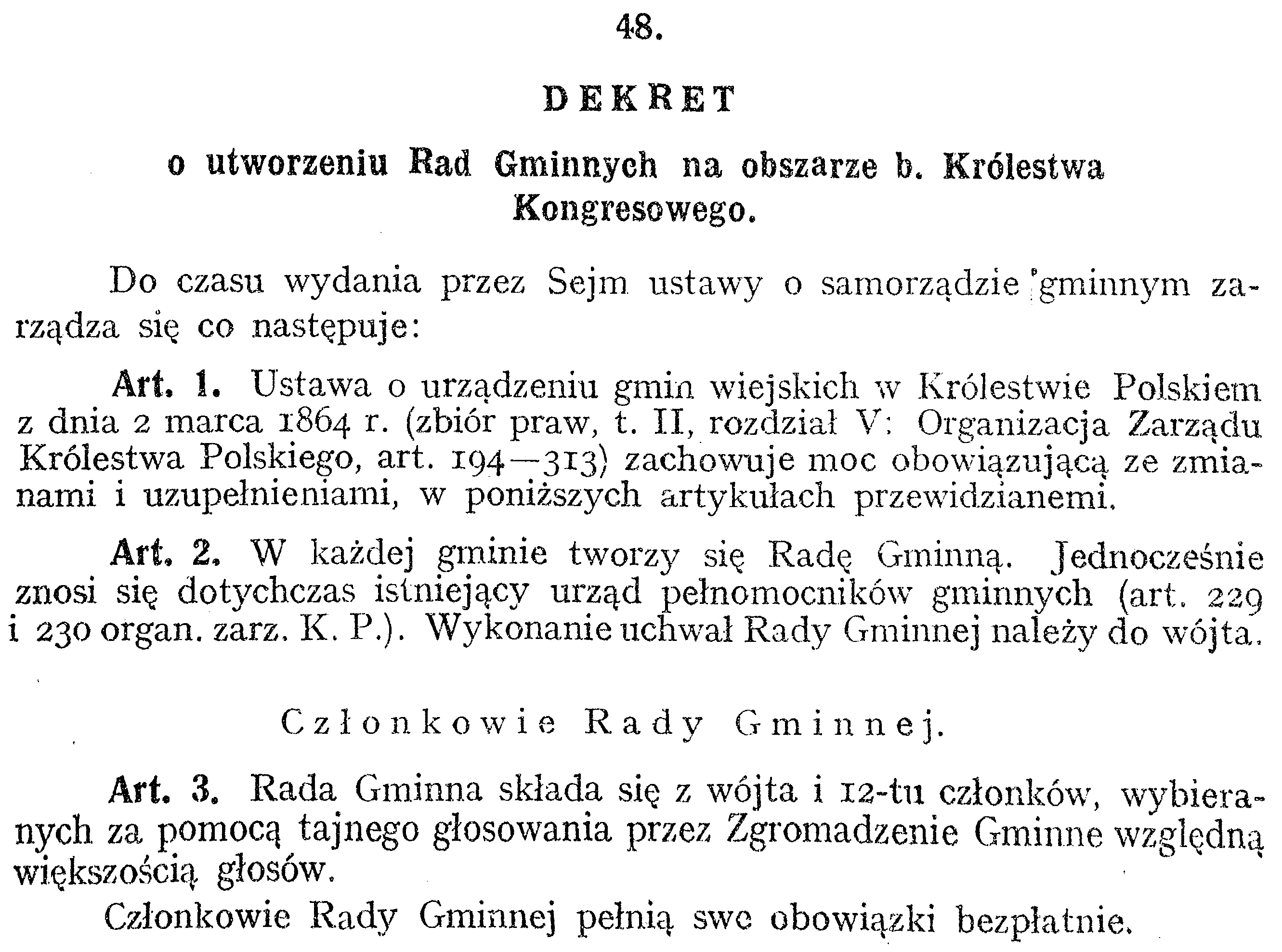 D19180048 Dekret o utworzeniu Rad Gminnych na obszarze b Królestwa Kongresowego